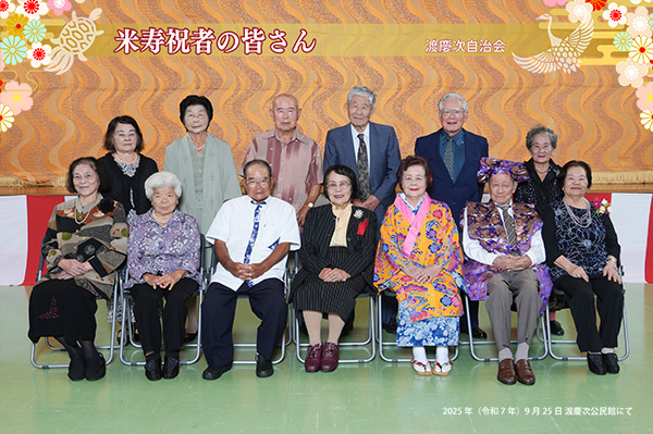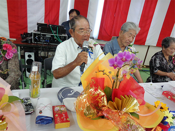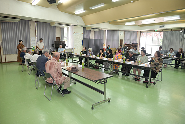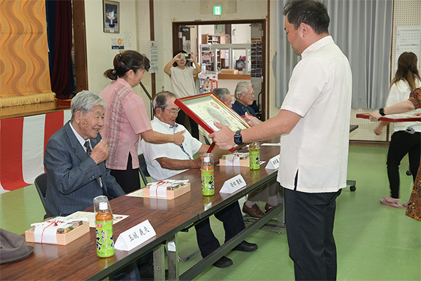 9月25日(木)公民館に米寿祝者をお招きし、読谷村長からのお祝いの品の伝達式を行い、合同記念撮影と食事会の小宴を行いました。初めての取組みでしたが祝者に喜ばれ、和やかに過ごしました。