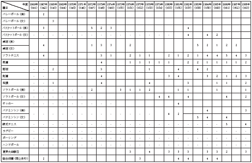 | 1968年(昭和43) | 野球、剣道、相撲 |