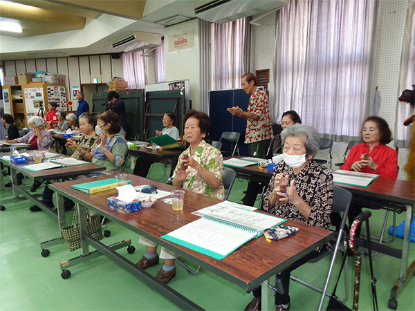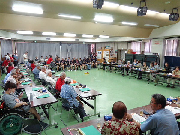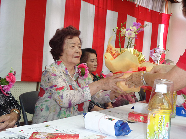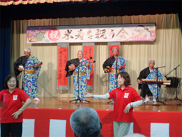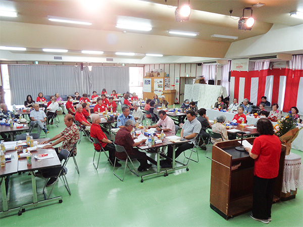 9月25日(木)公民館に米寿祝者をお招きし、読谷村長からのお祝いの品の伝達式を行い、合同記念撮影と食事会の小宴を行いました。初めての取組みでしたが祝者に喜ばれ、和やかに過ごしました。